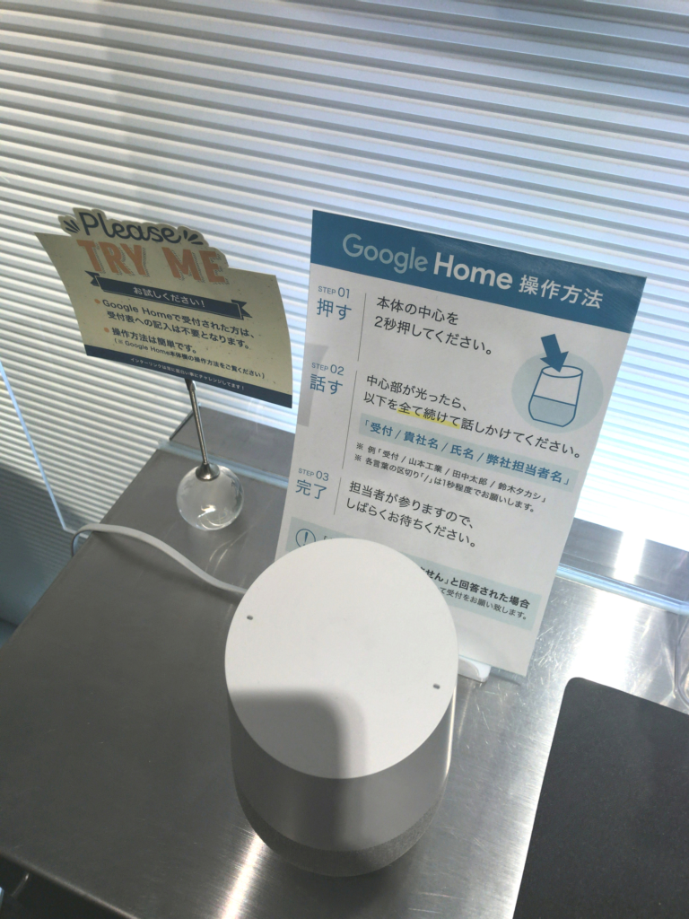 市ヶ谷の駅を降り、インターリンクさんの受付に行くと・・・Google Homeで来客受付をしていました。